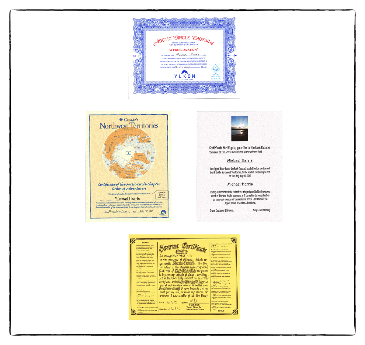 Almost every place has these little certificates for driving that far north, drinking a toe, sticking a toe in the arctic, etc… It’s sort of fun collecting them all. They also have “passports” for the historical routes that you can get stamped. It’s really challenging collecting all the stamps because some are in very hard to reach locations. Here are some of our little certificates for driving to the Arctic.